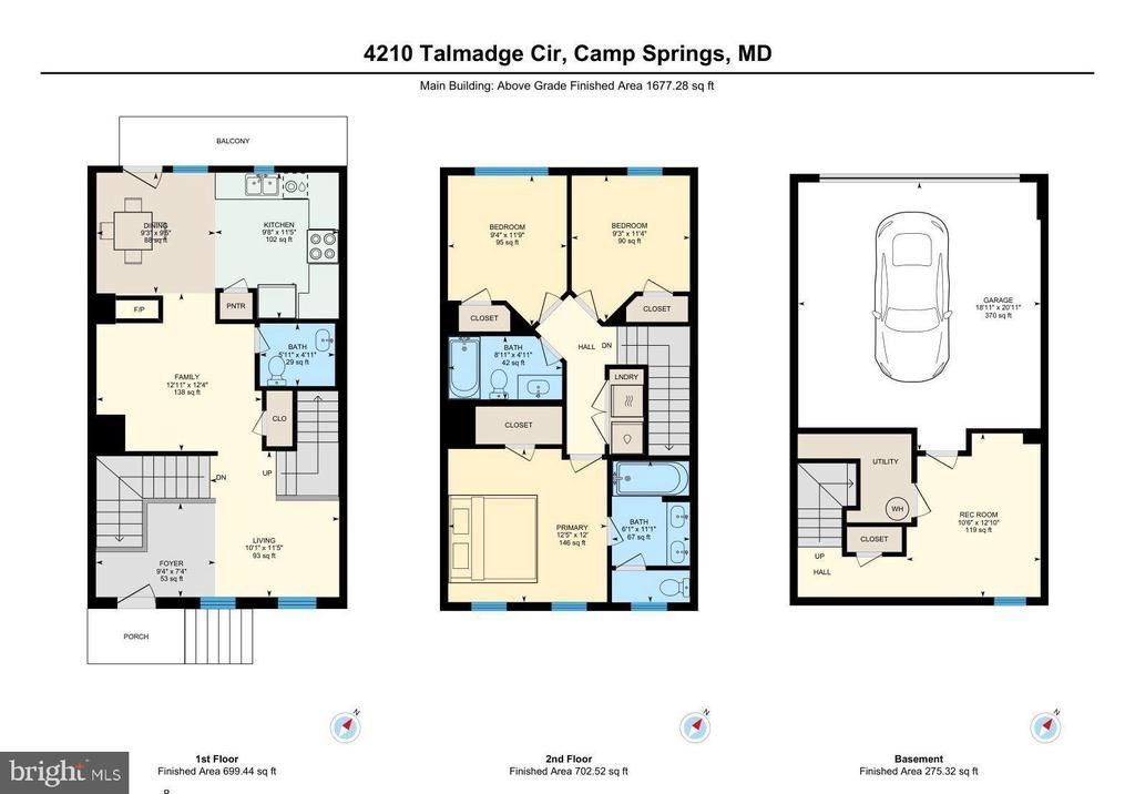 Welcome Home to 4210 Talmadge Circle! This well-maintained townhouse in the Town Center at Camp Springs community. This three bedroom, two full and one half bath home features fresh paint and newer carpet, along with a functional floor plan that includes multiple living spaces. The main level offers a living and dining area with a three-sided fireplace and oak flooring. The kitchen includes updated countertops and backsplash (2019), stainless steel refrigerator, and microwave (2017). Ceiling fans are installed throughout for added comfort. The upper level includes a primary bedroom with ensuite bathroom with double vanity and soaking tub. The lower level provides additional finished space and access to the attached garage. Additional updates include a new water heater and sump pump (2019). HOA amenities include a pool, tennis court, walking trail, tot lot, and provides landscaping, trash, and snow removal services. Conveniently located near metro access, major commuter routes including I-495 and Branch Avenue, with access to shopping, dining, and public transportation. Don't miss this opportunity of suburban comfort and city accessibility. Schedule your tour today. Open Saturday 2/18 1-3PM.